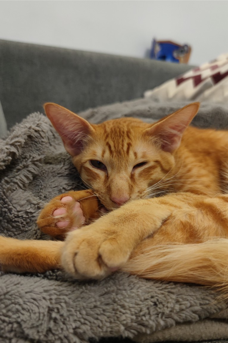 To nasz jedyny reproduktor. Pumpkin urodził się 8 lipca 2022r. Pumpkin jest przedstawicielem rasy orientalnej długowłosej, zwanej jawajską. Orienty i syjamy mają skąpy podszerstek, zatem okrywa kotów orientalnych długowłosych jest jedwabista i gładko przylega do ciała. Posiadają majestatyczny pióropusz na ogonie, który się pięknie się prezentuje w ruchu.